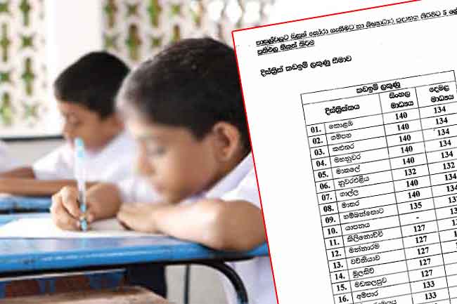 බදුල්ල, මොනරාගල යන දිස්ත්රික්කවල සිංහල මාධ්ය කඩඉම් ලකුණු සීමාව 134ක් සහ දෙමළ මාධ්ය ලකුණු සීමාව 132ක් වන අතර අම්පාර, ත්රිකුණාමලය, පුත්තලම, අනුරාධපුර, පොළොන්නරුව යන දිස්ත්රික්කවල සිංහල මාධ්ය කඩඉම් ලකුණු සීමාව 133ක් සහ දෙමළ මාධ්ය ලකුණු සීමාව 131ක් බව විභාග දෙපාර්තමේන්තුව සඳහන් කළේය.