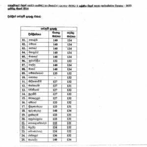 මෙවර 2025 පහ ශ්රේණිය ශිෂ්යත්ව විභාග ප්රතිඵලවලට අනුව දිස්ත්රික් මට්ටමින් කඩඉම් ලකුණු සීමාවන් ද විභාග දෙපාර්තමේන්තුව විසින් ප්රකාශයට පත් කර තිබේ.