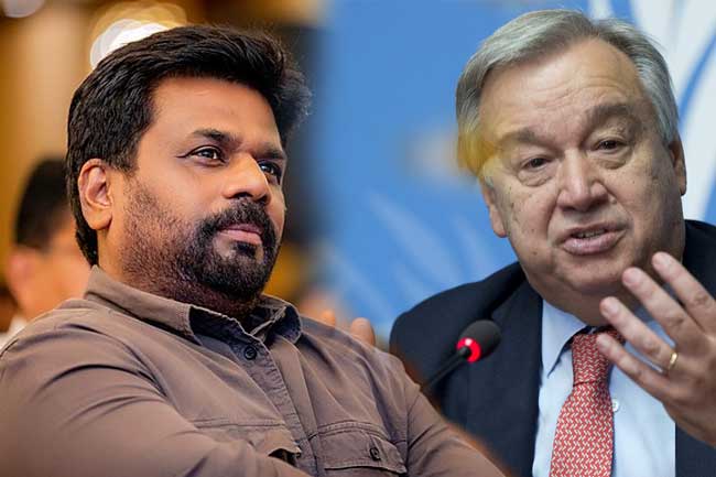 ජනාධිපති අනුර කුමාර දිසානායක මහතා සහ එක්සත් ජාතීන්ගේ මහ ලේකම් අන්තෝනියෝ ගුටේරෙස් මහතා අතර හමුව ශ්රී ලංකා වේලාවෙන් ඊයේ (25) රාත්රියේ පැවැත් වීමට නියමිත බව ජනාධිපති මාධ්ය අංශය පවසයි.