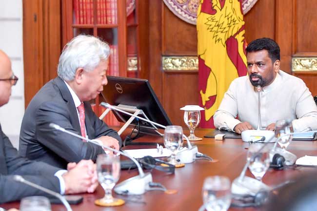ආසියානු යටිතල පහසුකම් අයෝජන බැංකුවේ සභාපති ජින් ලික්යුන් (Jin Liqun) මහතා ඇතුළු එහි ජ්යෙෂ්ඨ කළමනාකාරිත්වය ඊයේ (07) පෙරවරුවේ ජනාධිපති කාර්යාලයේදී ජනාධිපති අනුර කුමාර දිසානායක මහතා හමු වූ අවස්ථාවේදී මේ බව ප්රකාශ කළේය.