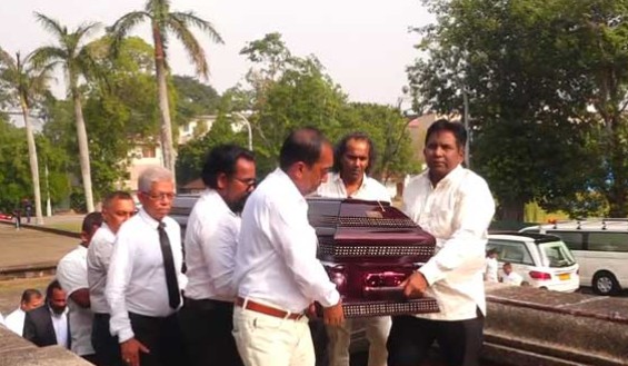 දේහය පිළිබඳ අවසන් කටයුතු අද පූර්ණ රාජ්ය අනුග්රහය සහිතව කොළඹ නිදහස් චතුරස්රය පරිශ්රයේදී සිදුකර බොරැල්ල පොදු සුසාන භූමියේදී භූමදාන කිරීමට සැලසුම් කර තිබේ.