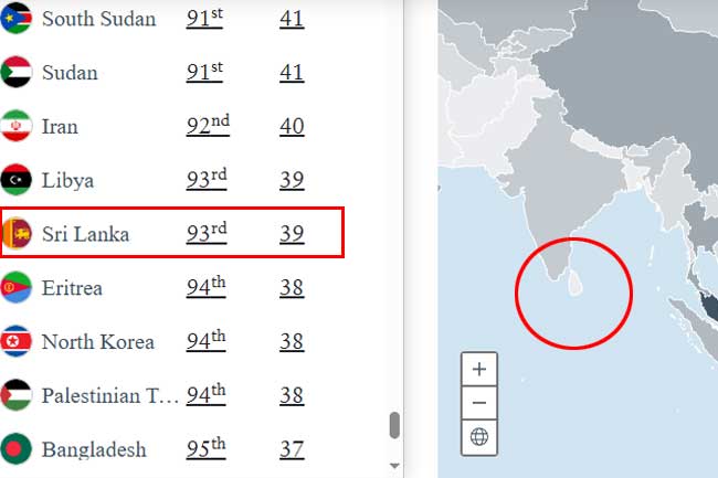 මෙම දර්ශකයේ ශ්රී ලංකාවට පහළින් සිටින්නේ රටවල් 11ක් පමණි.