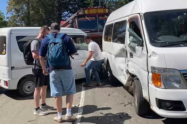 විදේශික සංචාරකයින් පිරිසක් රැගත් වෑන් රථයක් වැලිමඩ ප්රධාන මාර්ගයේ නුවරඑළිය ග්රෙගරි වැව අසල අනතුරකට ලක්ව තිබේ.