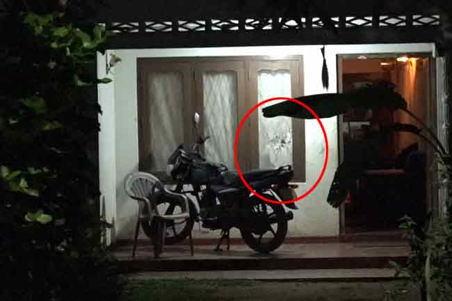 යතුරුපැදියකින් පැමිණි පුද්ගලයින් දෙදෙනෙකු විසින් එම නිවසේ ජනේලයට වෙඩි ප්රහාර කිහිපයක් එල්ල කොට පළාගොස් ඇති අතර ඉන් කිසිවෙකුටත් තුවාල සිදුව නොමැති බව සඳහන්වේ.
